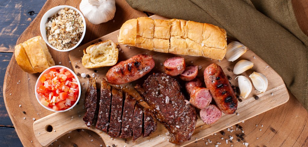 Découvrez les nombreuses saveurs de la gastronomie brésilienne grâce à nos viandes, légumes, tapioca et herbes !
